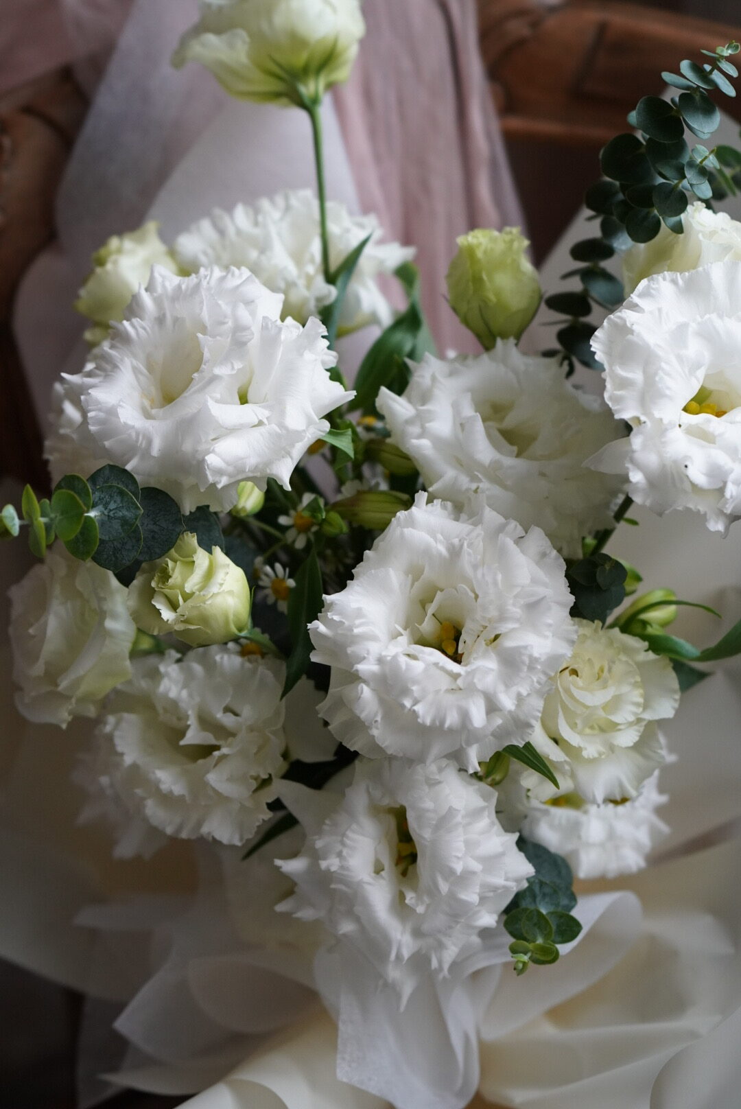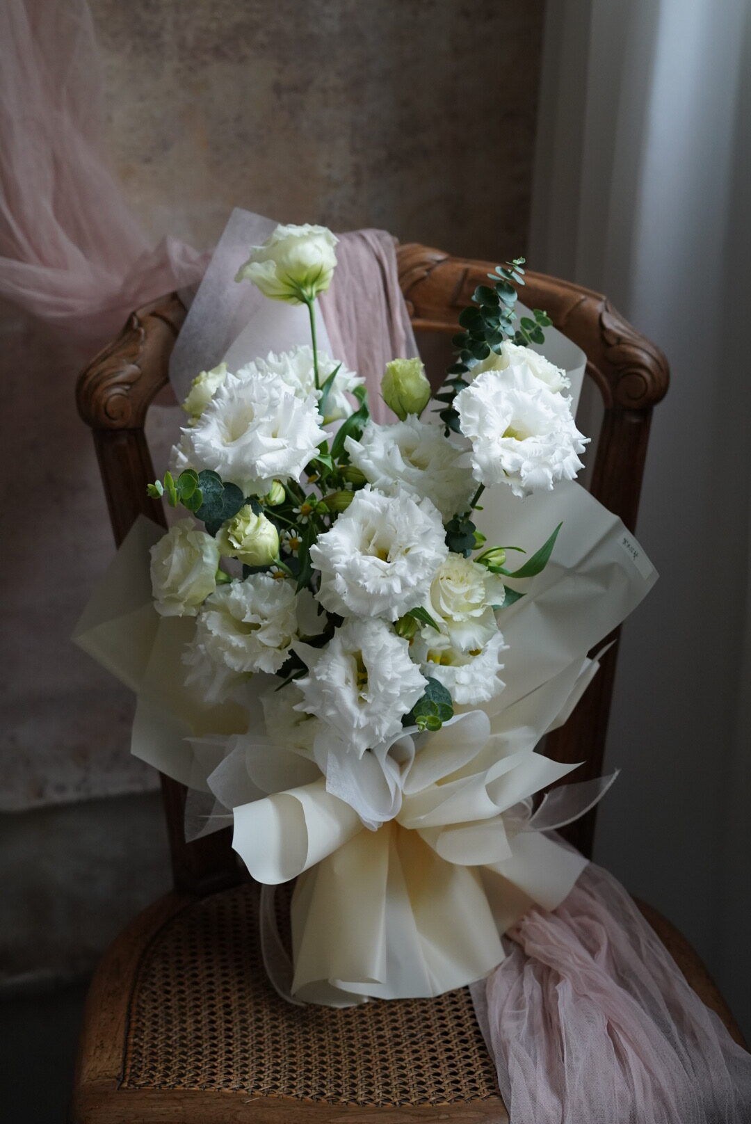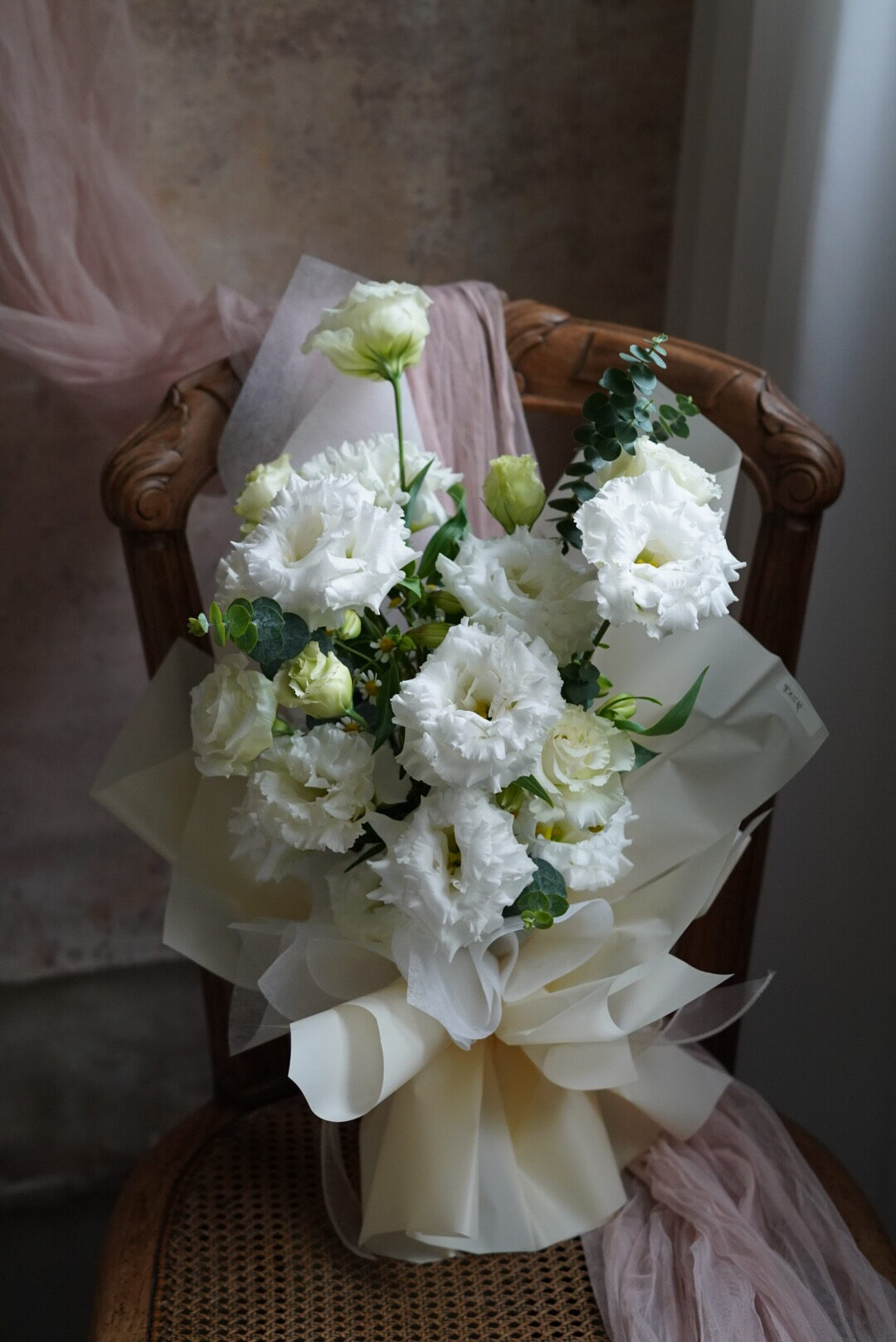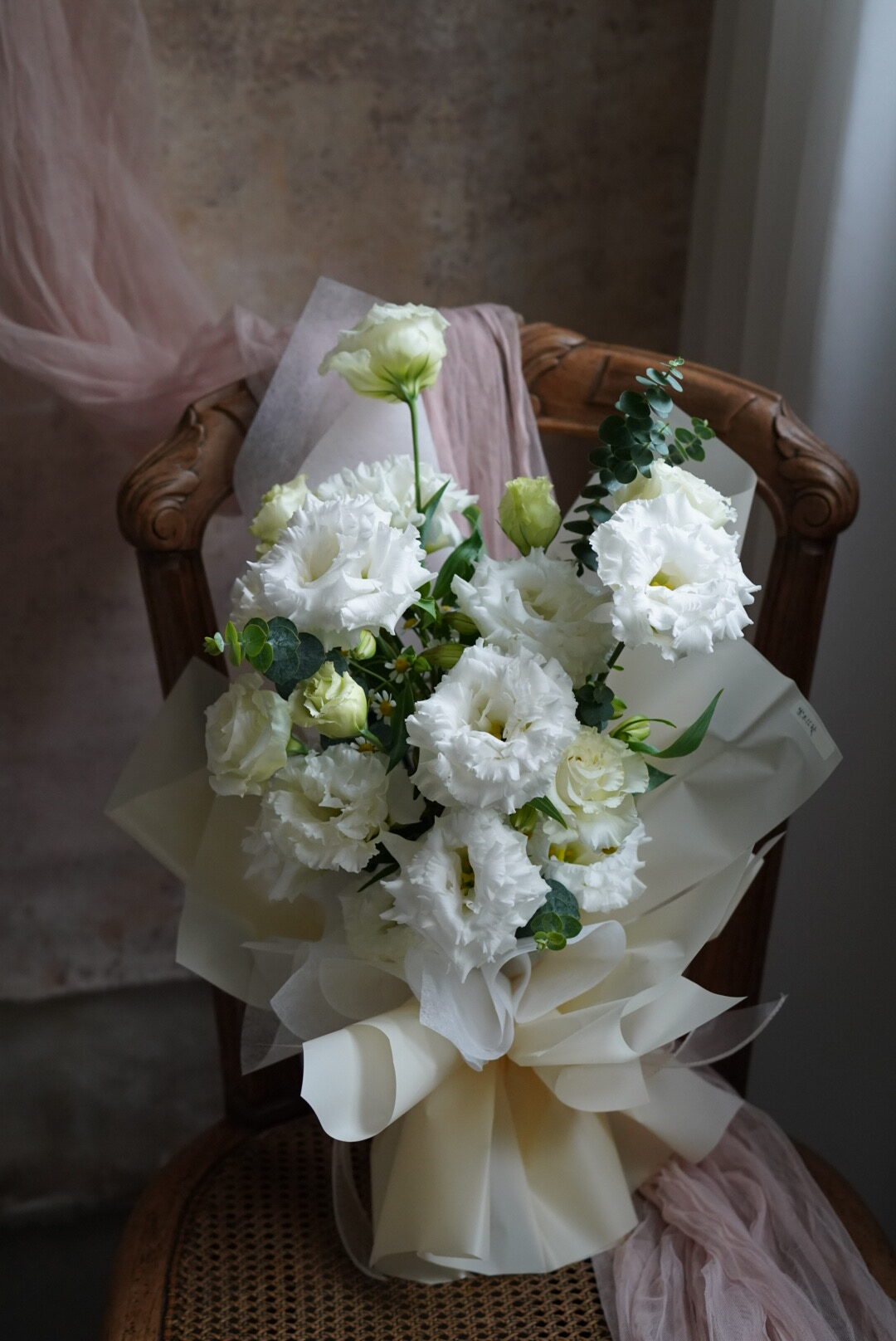 這束花不僅僅是植物,更是一份無聲的情書。我們精選鮮採的高品質白桔梗(Eustoma),花瓣如絲綢般細膩層疊,搭配翠綠的尤加利葉,營造出一種空靈且高級的視覺層次。